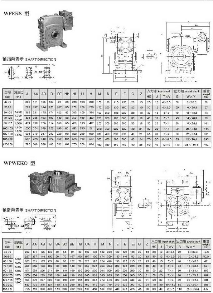 WPEKS,WPWEKO型型號參數(shù)圖表