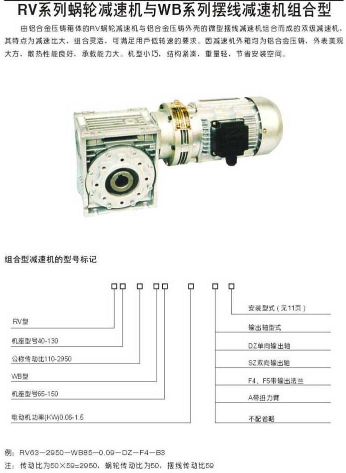RV系列蝸輪減速機(jī)與WB系列擺線減速機(jī)組合型型號表示方法
