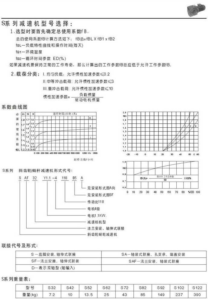 S系列減速機型號表示系數曲線圖聯(lián)結代號及形式重量表